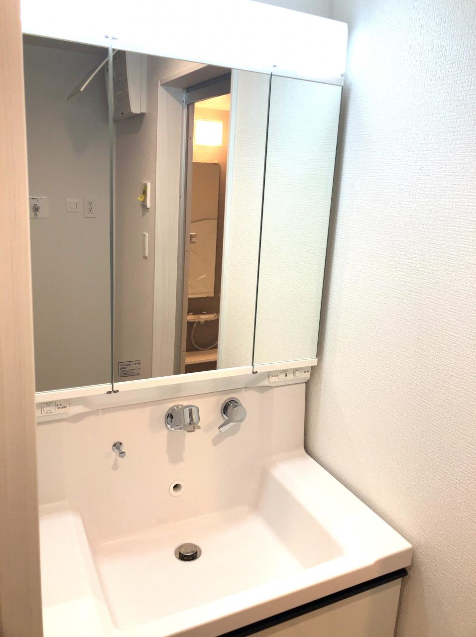・浴室換気乾燥暖房機(浴室乾燥機) ・温水洗浄便座(ウォシュレット) ・三面鏡付き洗面洗髪化粧台(洗面化粧台)