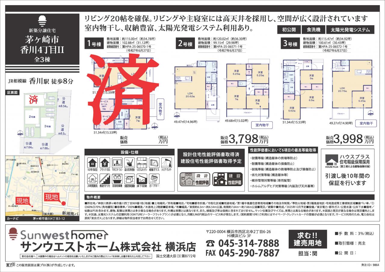 サニータウン茅ヶ崎市香川4丁目Ⅱ ★全3棟のご案内です★