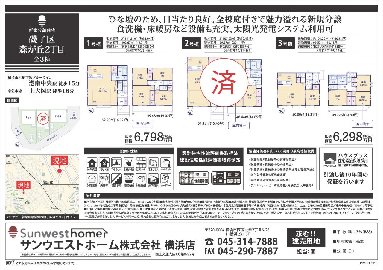 サニータウン磯子区森が丘2丁目 ★残り2棟のご案内です★